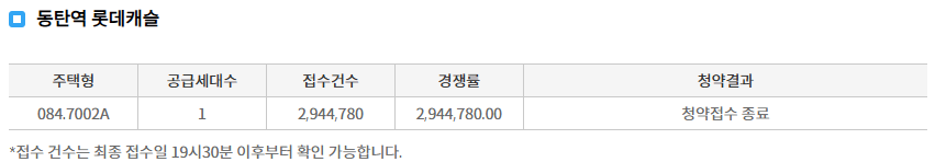 심지어 동탄역 롯데캐슬은 거의 300만에 가까운, 진짜 로또급의 경쟁률을 보여줬다.