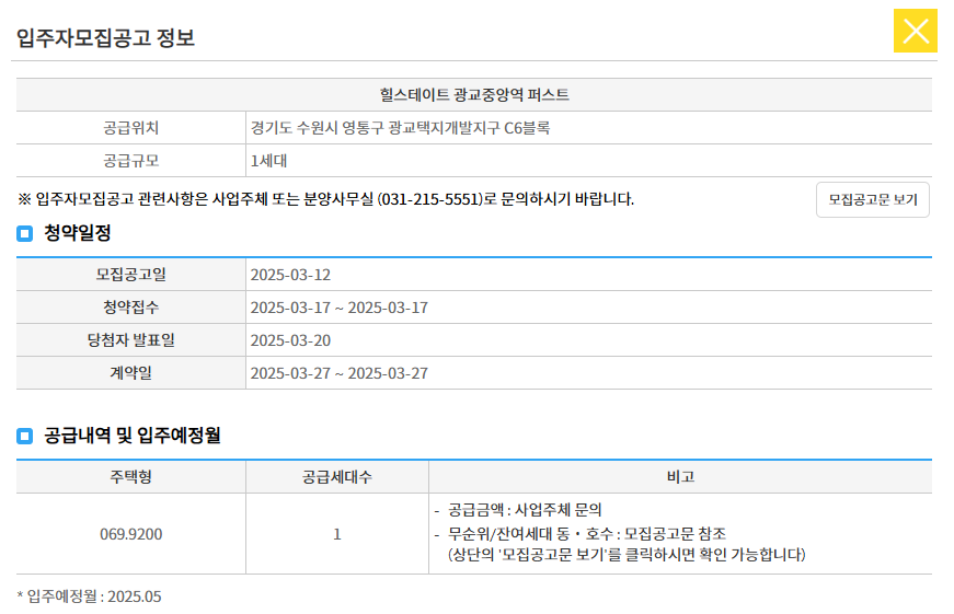 무순위와 계약취소 2건이 올라왔는데, 무순위는 19세 이상 국내 거주자이면 가능하고 계약취소는 수원 거주 무주택자만 가능하다.