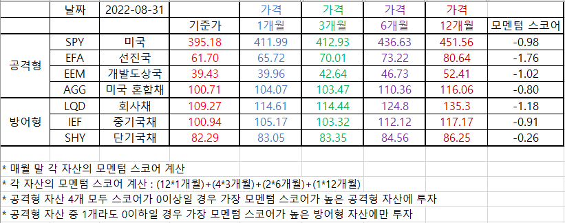 공격형에 투자하지 않으면 방어형에 넣으라고 하는데, 모멘텀 스코어가 마이너스인데 넣어야하나 모르겠다.