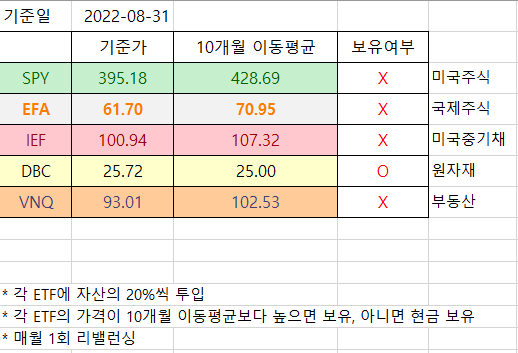 8월 기준으로 DBC를 20% 보유하기로 한다.