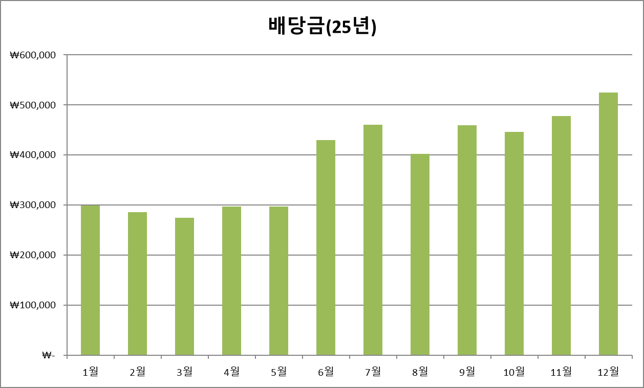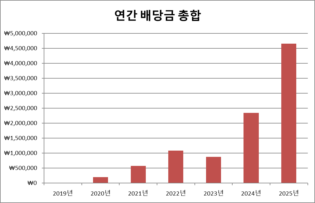최종적으로 25년 배당금은 450만원을 넘어 약 460만원정도 됐다.