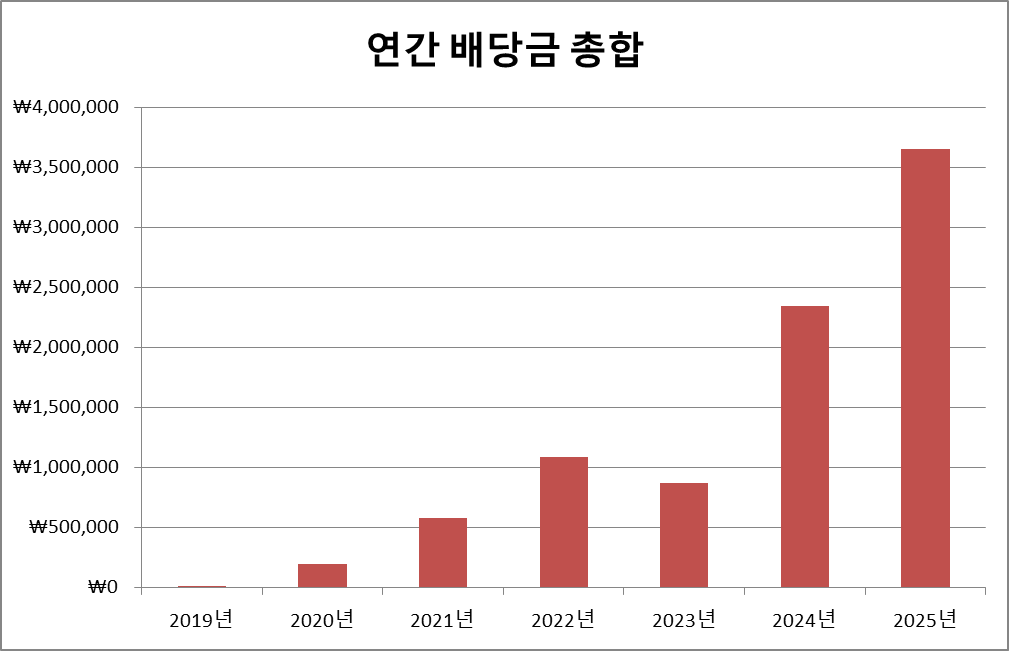 올해 누적 배당금이 350만원을 넘어섰고, 400만원은 충분히 넘길 듯 하다.