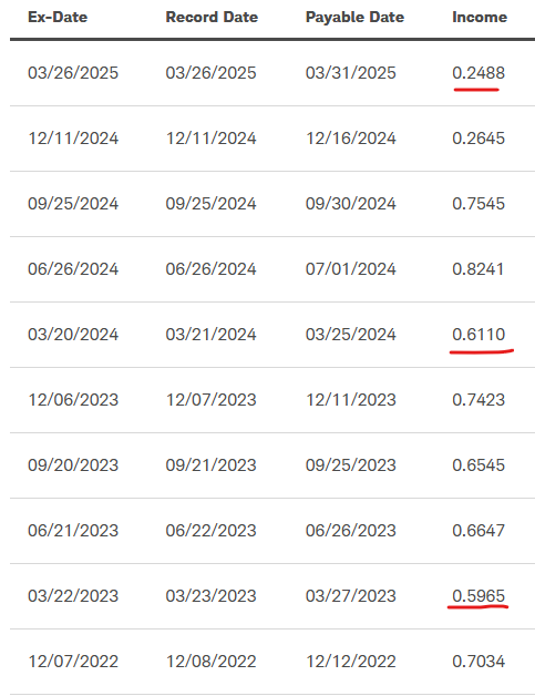 그래서 무슨 일인가 했더니 SCHD에서 3월 분배금이 아주 적게 나왔던 것이었다.