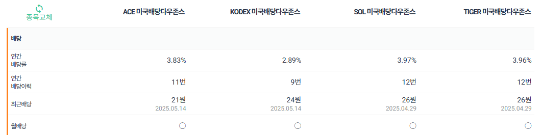 다른 한국판 SCHD도 비슷한 수준으로 보인다.