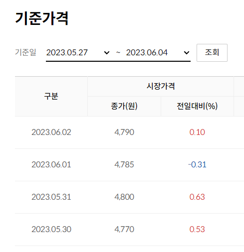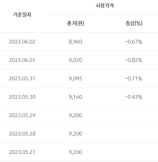 그럼 이 배당금만으로 주식을 다시 매수할 수 있었는가? 과거 가격을 찾아보면 답이 나온다.