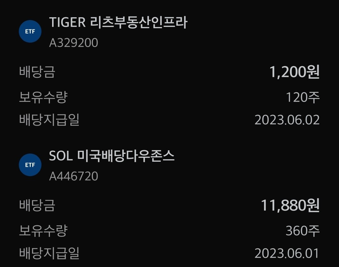 검증을 위한 ETF는 TIGER 리츠부동산인프라와 SOL 미국배당다우존스 2가지 였다.