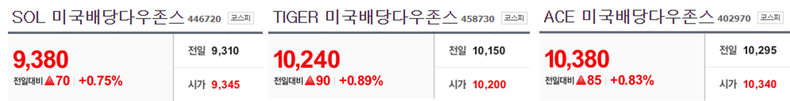 정확히 기억이 나지는 않지만 TIGER는 연 배당률이 약 10%, SOL은 약 3~4%?정도였을 것이다.