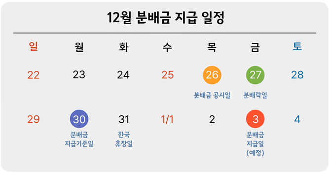 위의 예시를 참고하면, 12월 26일을 기준으로 분배율을 계산해서 공시한다.
