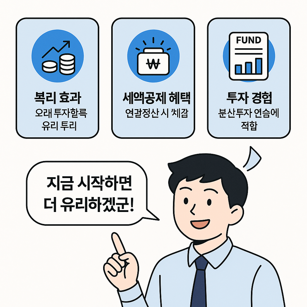 게다가 그 과정에서 세금 혜택도 받고, 투자 경험도 쌓고, 돈 관리 습관까지 자연스럽게 만들어지니 이보다 더 알찬 선택이 있을까요?
