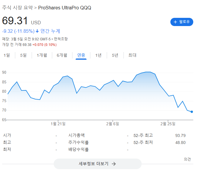 레버리지 ETF를 투자하니 이런 식으로 체감이 되는군.