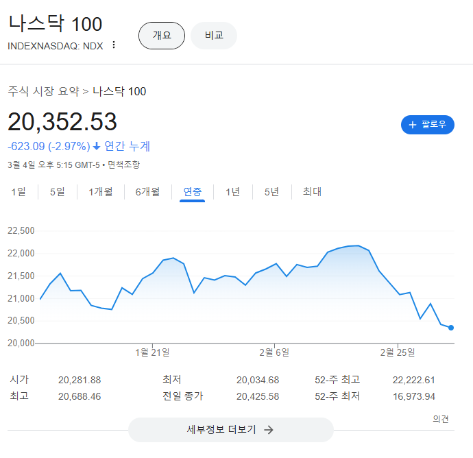 관세 전쟁이 본격적으로 시작되면서부터 주식 시장이 힘을 못 쓰는 모습이다.
