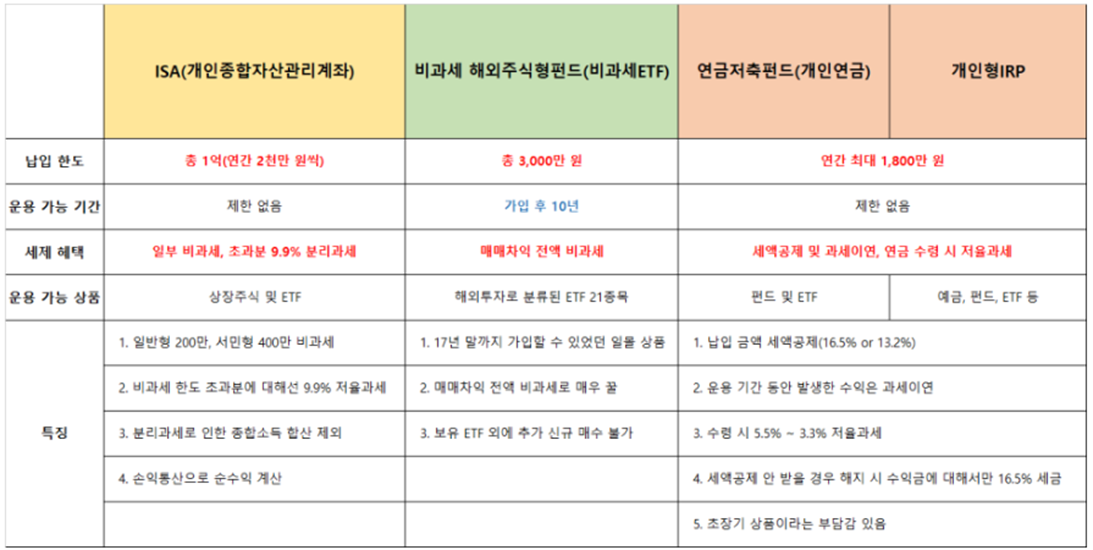 그런데 배당소득세의 원천징수에서 비교적 자유로운 것이 있으니, 절세상품인 연금계좌와 ISA이다.