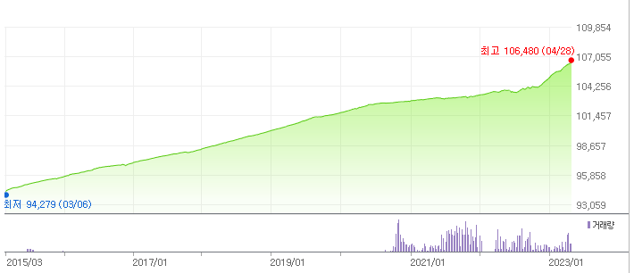 KODEX단기채권PLUS의 그래프(출처 : 네이버 증권)