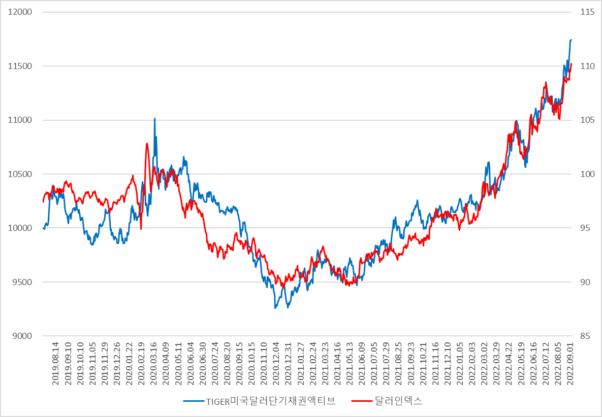 그리고 미국달러단기채의 경우 달러투자를 간접적으로 하기 위해서다.