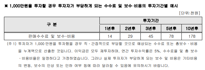 그런데 각 펀드 상품의 투자설명서를 보면 뭔가 추가적인 수수료가 있음을 알 수 있다.