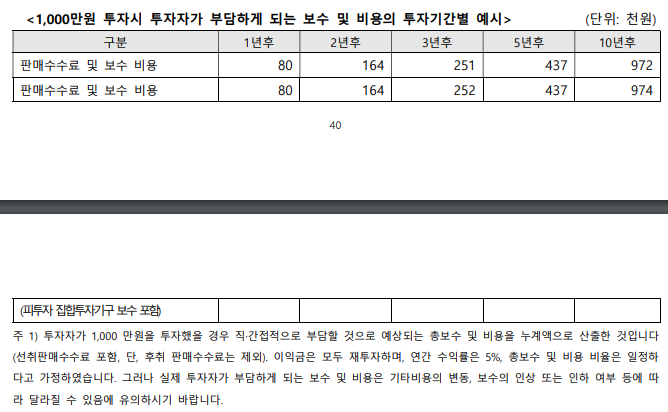 각 투자설명서에는 친절하게 직접 계산한 표도 적혀있다.