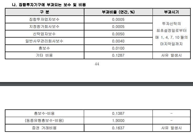 일단 홈페이지 상품설명서에 적혀있는 수수료는 총 보수로, 둘 다 0.01%임은 쉽게 알 수 있다.