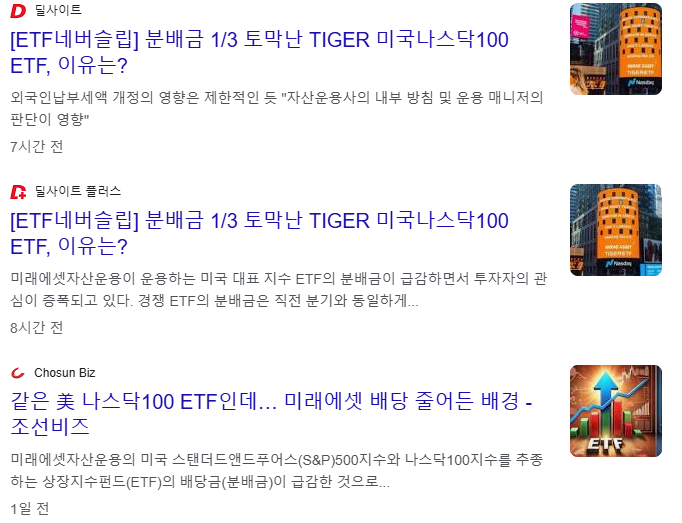 안그래도 좋지 않은 상황에서 TIGER ETF에서는 분배금이 많이 줄었다는 뉴스로 또 시끄럽다.