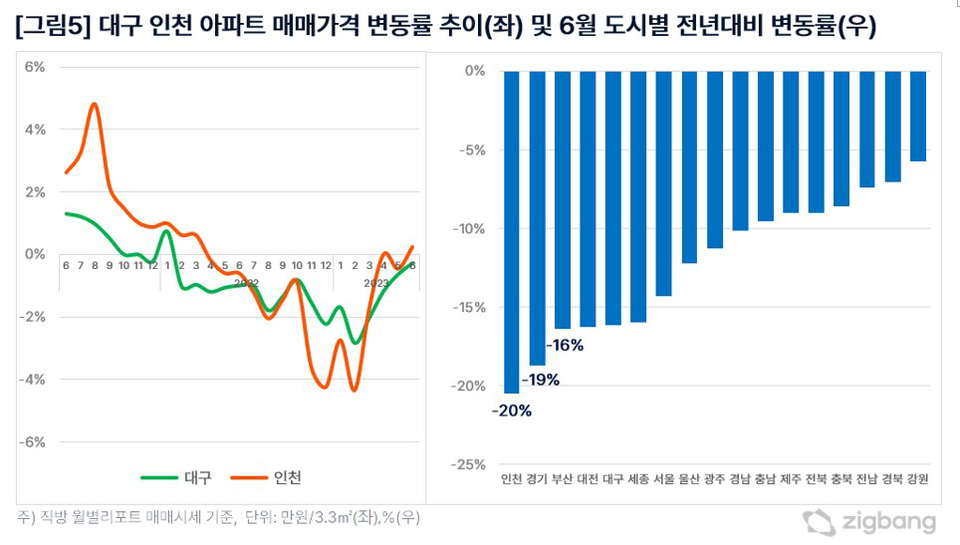 21~23년 대구 및 인천 부동산 가격 추이(출처: 경북일보)