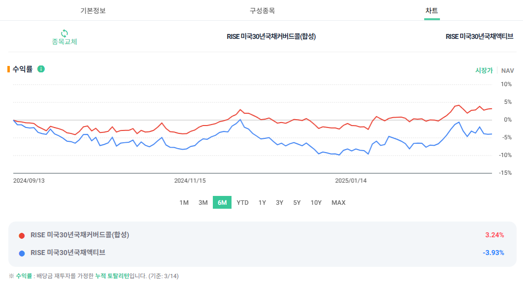 30년 미국채에 투자하는 ETF인데, 최근 살펴보면 커버드콜의 수익이 조금 더 나아보인다.