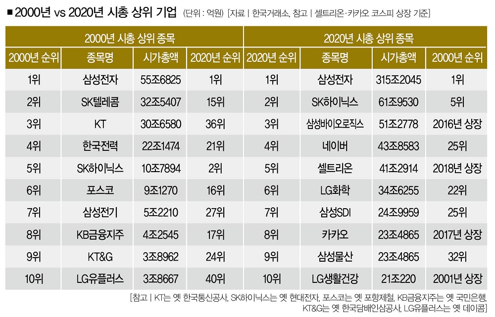 시총 상위 기업은 계속 변화한다.(출처: 더스쿠프)