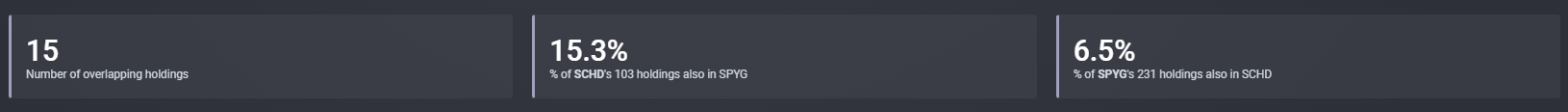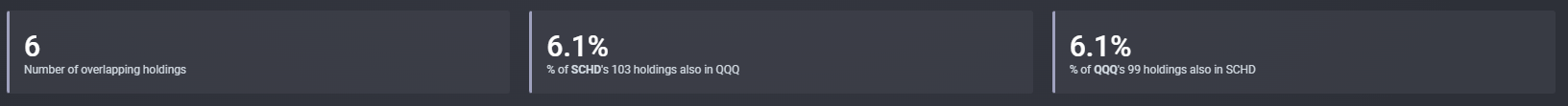 분산이 다 많이 되어있는 대신 아무래도 SCHD와 중복 투자되는 부분은 더 많을 수 밖에 없었다.