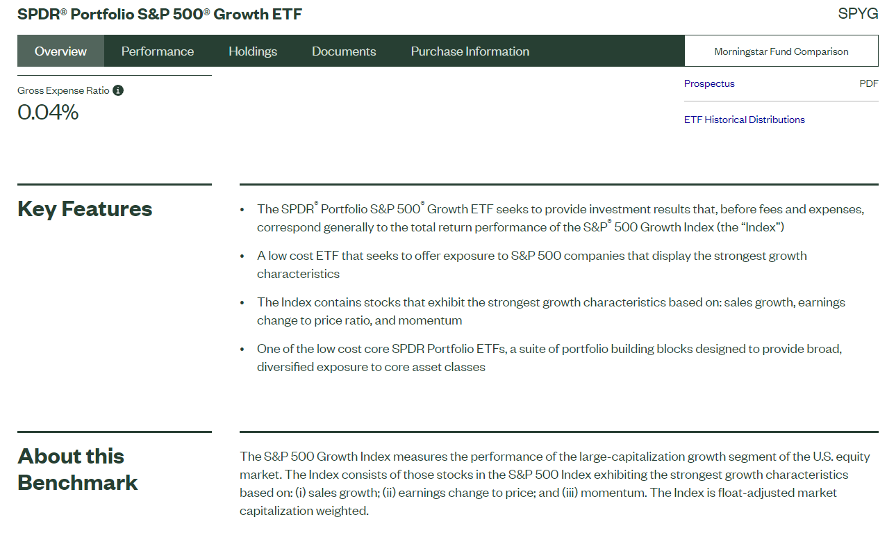 이걸 보니 간만에 떠오르는 ETF가 있었다. 바로 SPYG라는 미국 ETF였다.