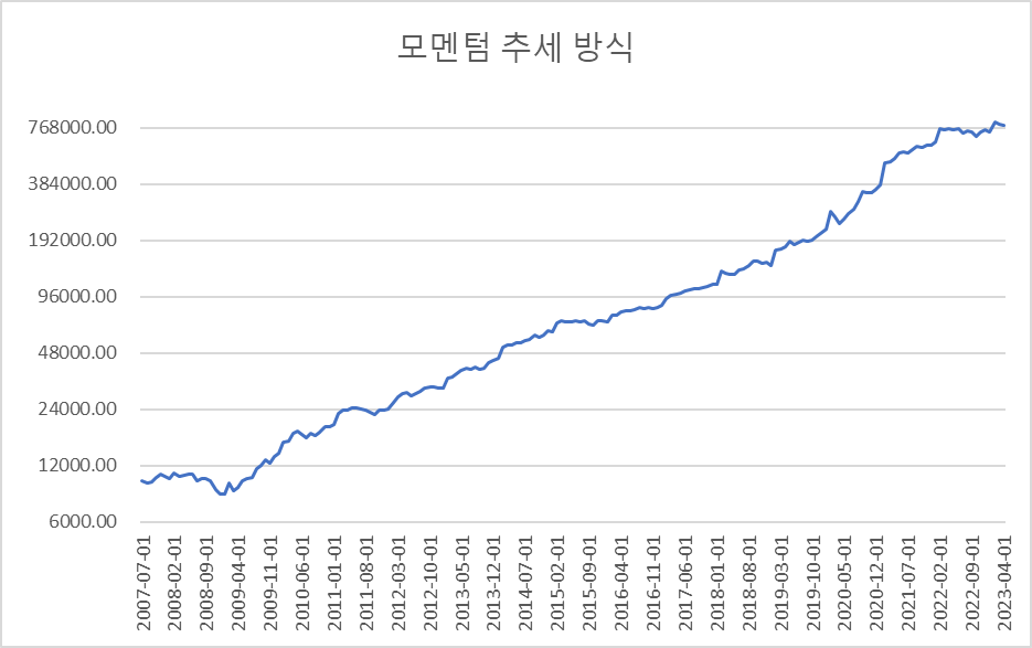 "모멘텀의 추세를 계산해서 상승할 때에만 투자한다."