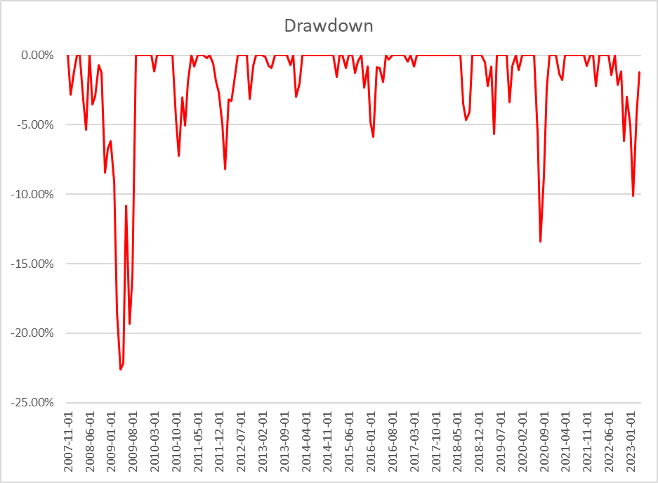 이러한 결과 때문에 MDD가 더욱 낮아지는 것이고, 적립식의 수익률도 낮아지는 것이다.