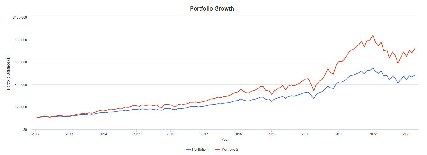 비교는 다음 두 포트폴리오이다.(연 1회 리밸런싱)