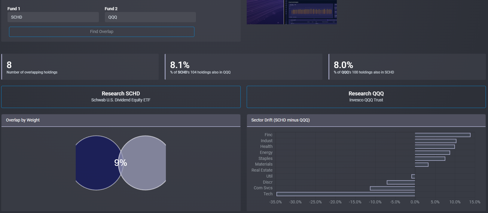 참고로 SCHD와 QQQ를 선택한 이유는 서로 추구하는 방향이 다르기에 겹치는 종목이 적어서이다.