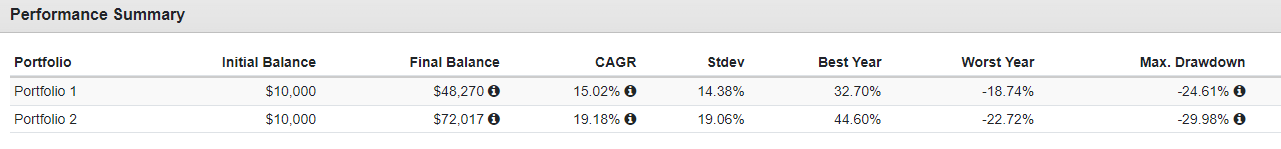 MDD가 약 5%p 차이가 나지만, 그렇게 떨어지더라도 포트1의 최고점보다 높은 수익을 갖게 되었다.