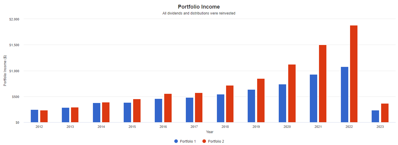 특히 SCHD의 경우 배당성장률도 높은 편이라(연평균 약 12.3%) 비중이 높은만큼 시간에 따른 배당의 위력이 더욱 높아진다.