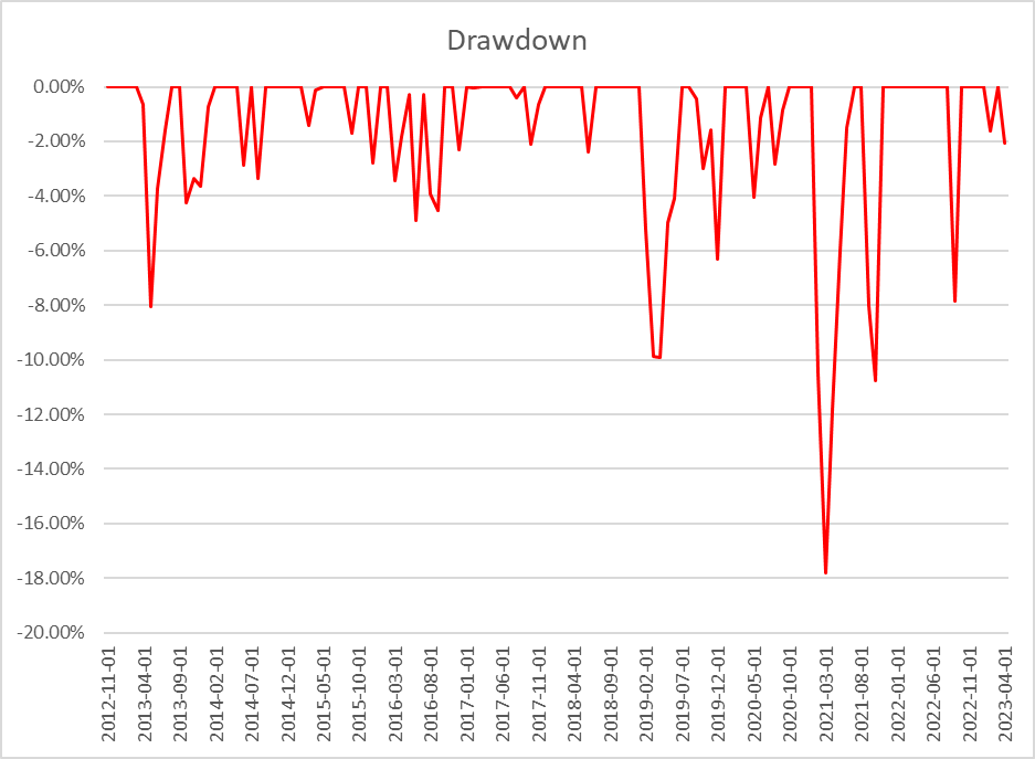 백테스트 기간은 마찬가지로 2011년부터 2023년까지이다.