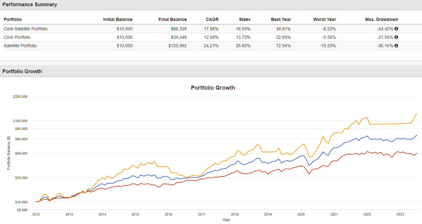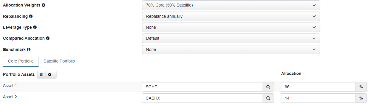 Core-Satellite의 비중을 다시 70%+30%로 변경하고, Core 포트폴리오에서 현금(CASHX)를 넣는다.