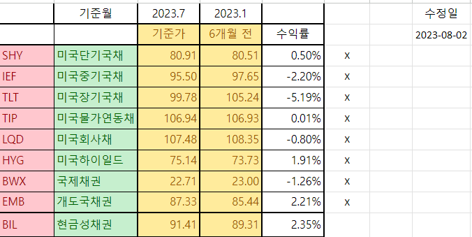매도 : EMB(86.82), HYG(74.86), TLT(98.84)