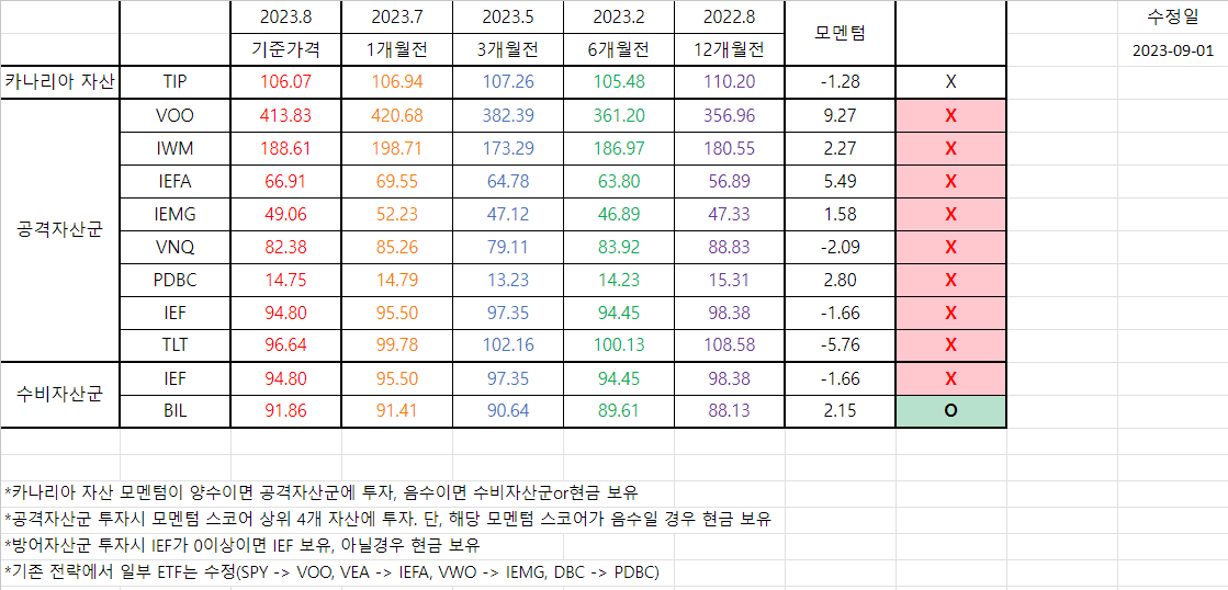 마침 모멘텀 스코어도 계산해보니 이전 달에 비해 떨어졌으니 원래는 매도를 모두 해야했다.