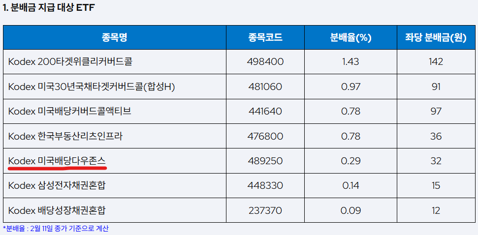 이번에 KODEX는 32원으로 분배율은 0.29%이다.