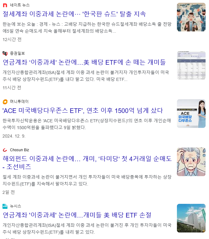이중과세 논란이 생긴 이후 미국투자 월배당 ETF에서 자금이 많이 빠져나가고 있다고 한다.