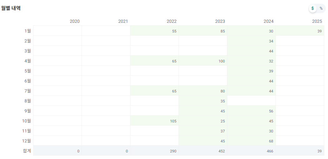 해당 ETF의 과거 배당 내역을 살펴보면, 이번 분배금보다 적었던 적은 23년 10월(25원)뿐이다.