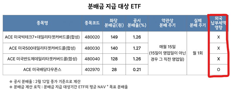 ACE ETF의 외국납부세액 영향 공지
