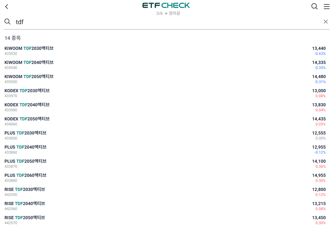 국내에 상장되어 있는 TDF ETF(출처: ETF CHECK)
