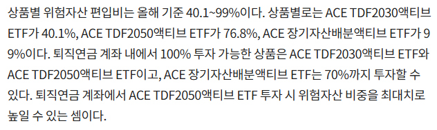 그러고보니 ACE ETF는 지금까지 TDF가 없었다.