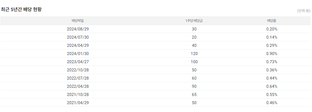 분배금은 올해 7월부터 월배당으로 바뀌었기 때문에 이전에는 분기 배당을 실시했다. 그런데 분기마다 준 것도 아니고, 주고 싶을 때(?) 준 것 같다. 이래서 국내 상품에 투자하고 싶지 않은거다. 그렇다고 분배율이 높은 것도 아니었다.