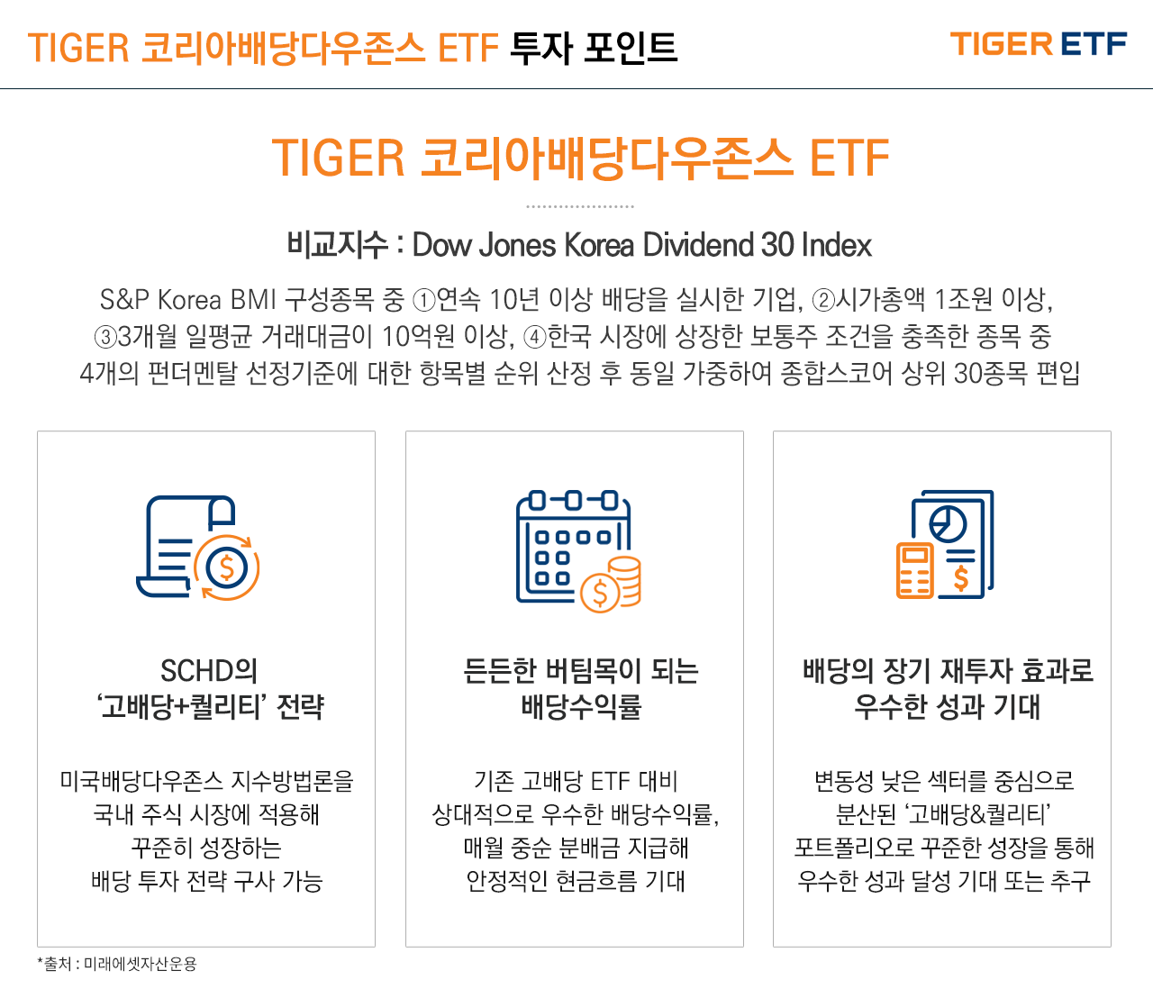 그래서 ETF 이름도 TIGER 코리아배당다우존스라고 명명되었다.