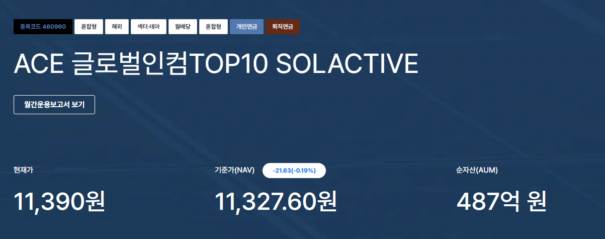 상품명 : ACE 글로벌인컴 TOP10 SOLACTIVE