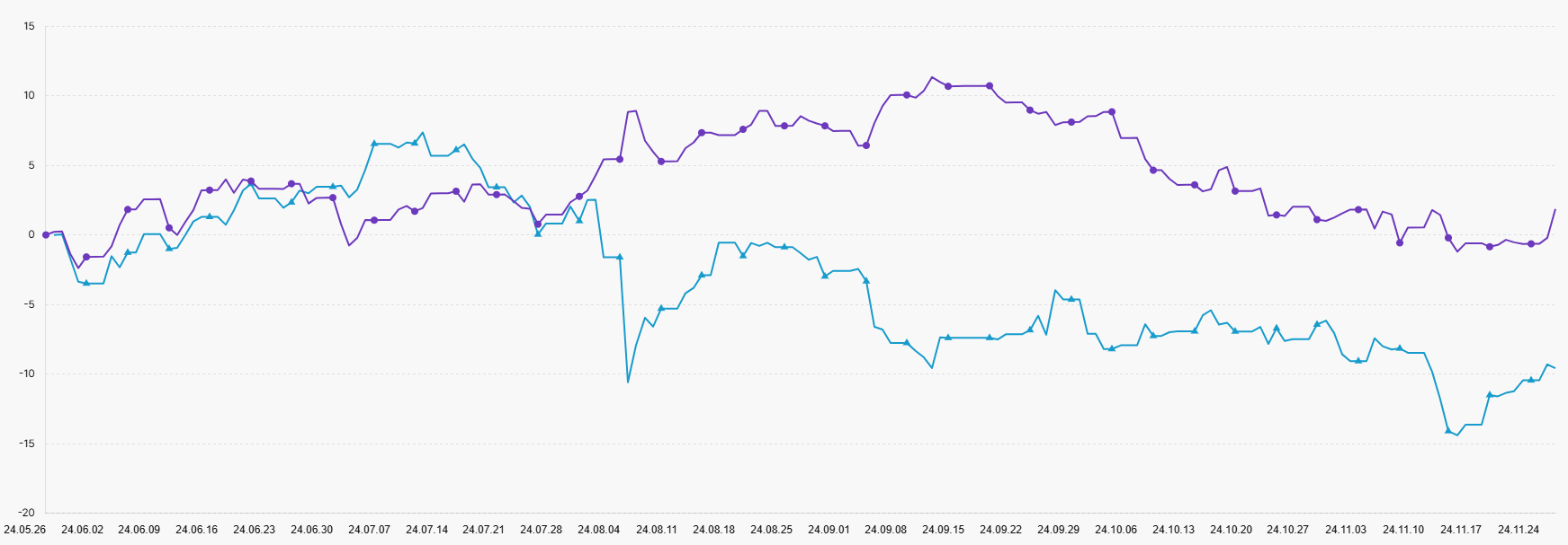 하지만 이건 상장 이후, 대략 20개월의 모습을 나타낸 것이고 기간을 바꾸면 모습이 다르게 보인다.