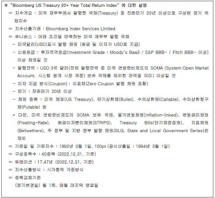 기초지수 : Bloomberg US Treasury 20+ Year Total Return Index