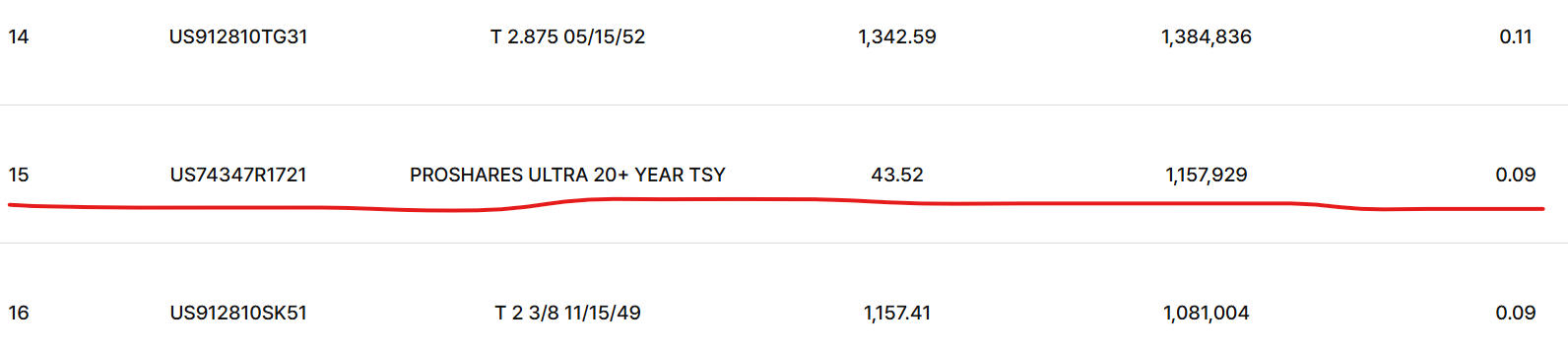 위 스크린샷에는 나오지 않았지만 종목을 더 확대해보면 UBT, 2배 레버리지 ETF도 담고 있다.