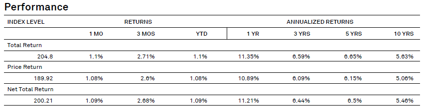 참고로 지수에 대한 내용을 S&P글로벌에서 확인할 수 있는데, 기초지수는 2011년부터 산출되기 시작했다.